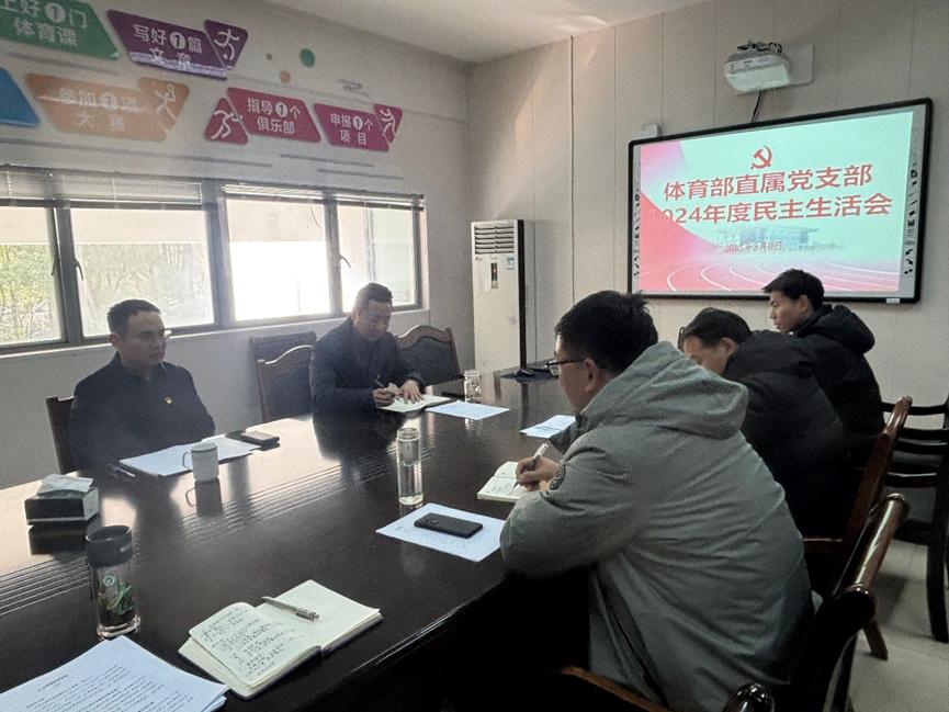 最后,汪建春代表部门领导班子作表态发言。他表示,部门班子将以此次民主生活会为新的契机,加强政治理论学习,巩固深化党纪学习教育成果,以党的政治建设为引领,坚持党性党风党纪一起抓,认真抓好问题整改落实,扎实推进体育部支部党建和业务共发展。